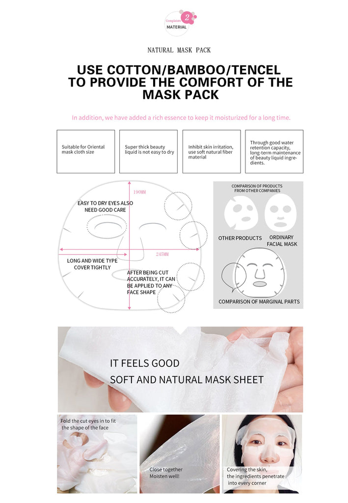 By using our high-grade mask sheet, you¡¯ll maximize the absorbing power of highly concentrated active ingredients into the skin.