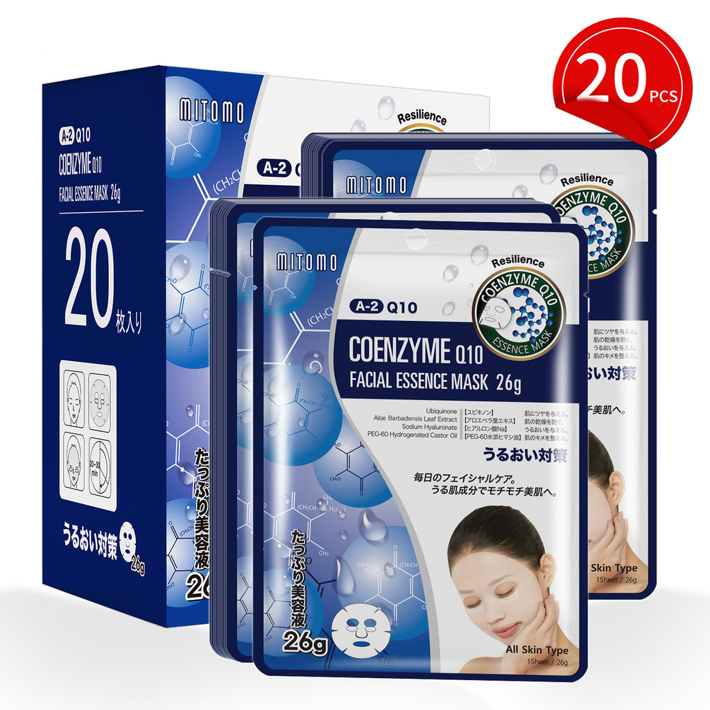 The new MITOMO Natural Q10 Resilience Facial Essence Mask is abundant in natural Q10. Maintain elastic skin and obtain youthful skin. Incorporate it into your daily skincare routine and keep your skin youthful with the blessings of Q10.