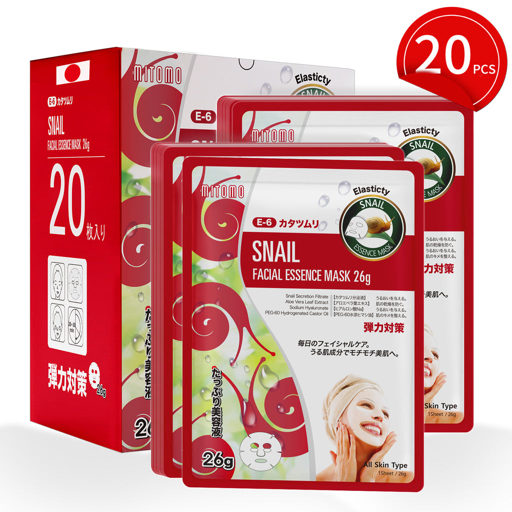 MITOMO Natural 516 Snail Facial Essence Mask:20 Sheets [MTSS00516-E-6x002]