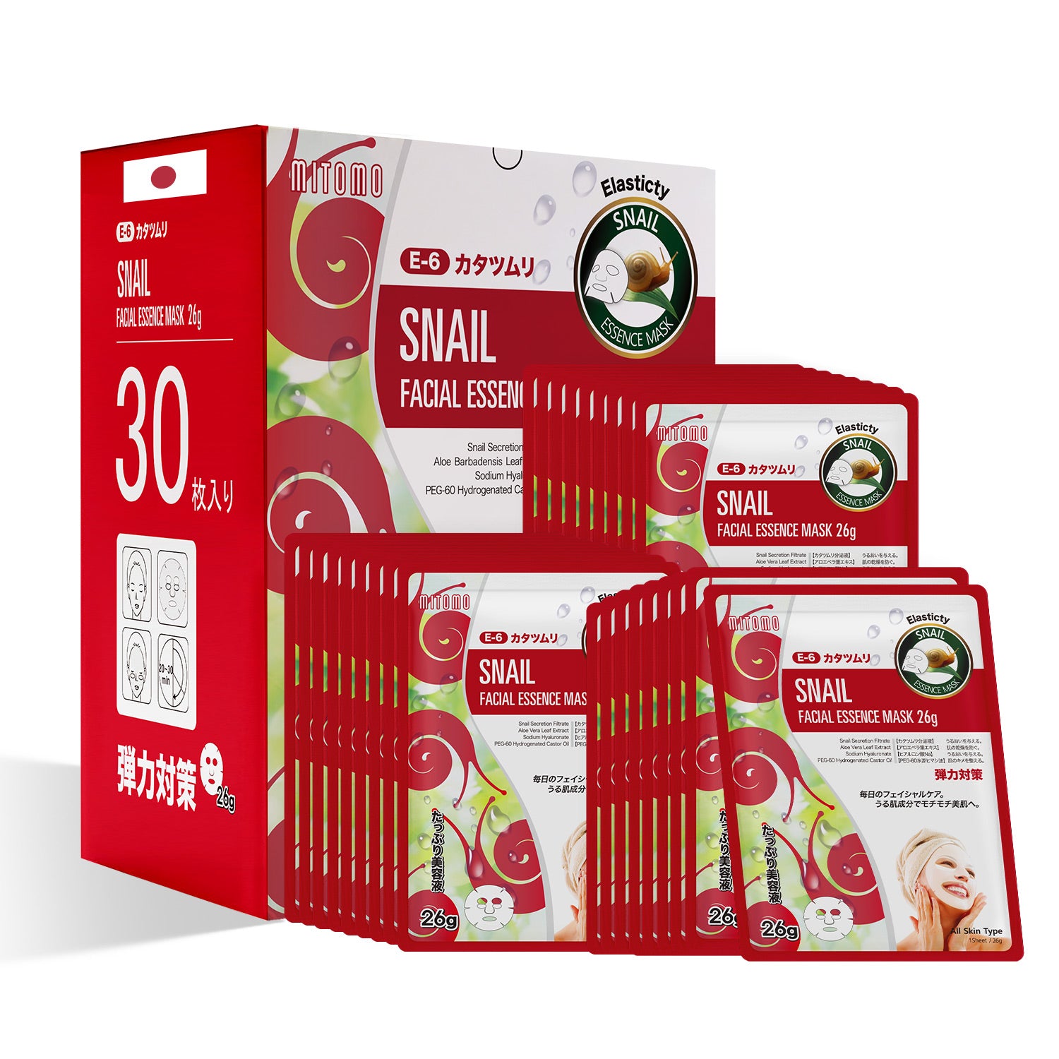 MITOMO Natural 516 Snail Facial Essence Mask:30 Sheets [MTSS00516-E-6x003]